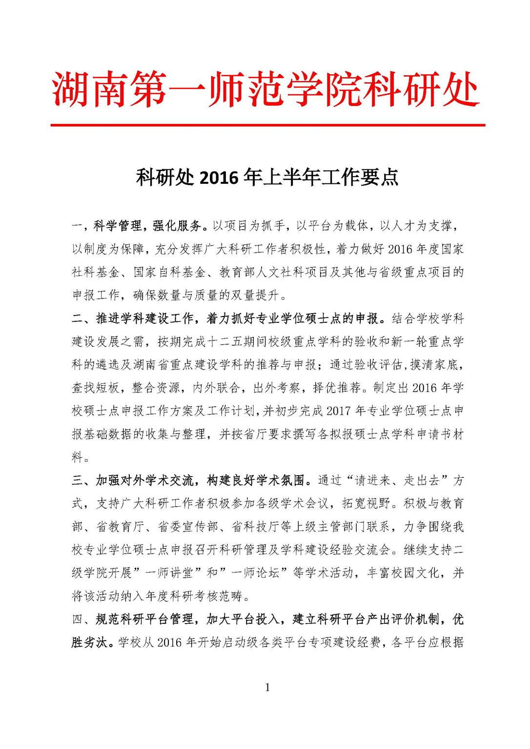 科研处2016年上半年工作要点