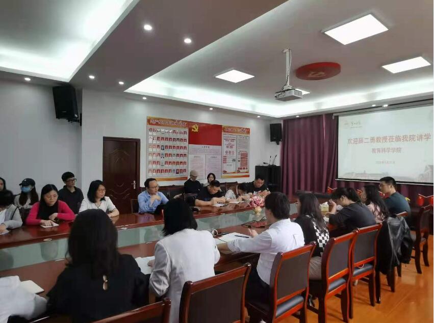5月27日上午,北京师范大学特聘教授、教育部青年长江学者,博士生导师薛二勇教授应邀来我校进行学术交流。薛教授在特立北楼208会议室做了“如何做教育科研”的学术报告。报告会由教科院院长胡春光教授主持,教科院青年学术骨干、润之班部分同学等50多人参加了报告会。