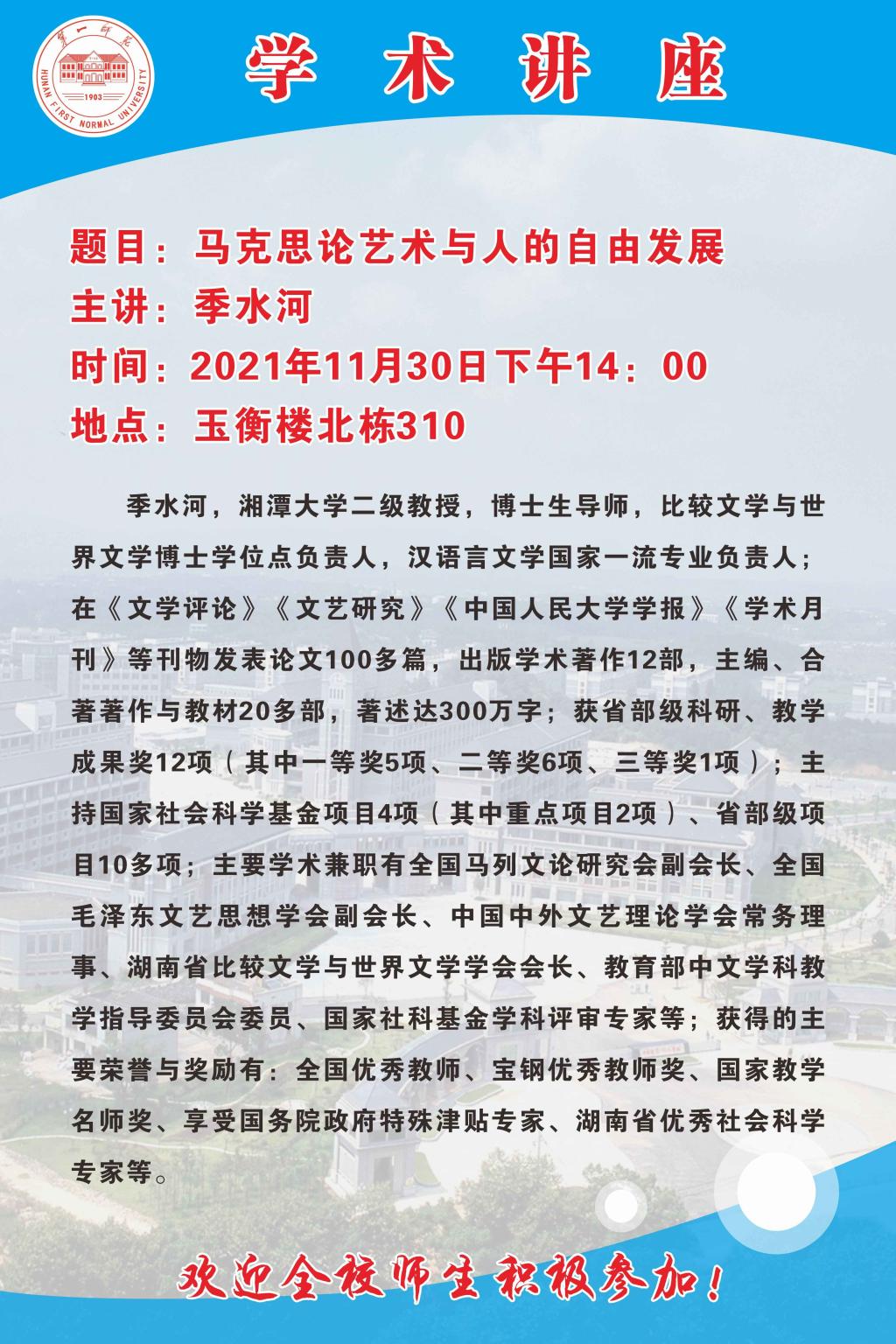 学术讲座预告|季水河:马克思论艺术与人的自由发展