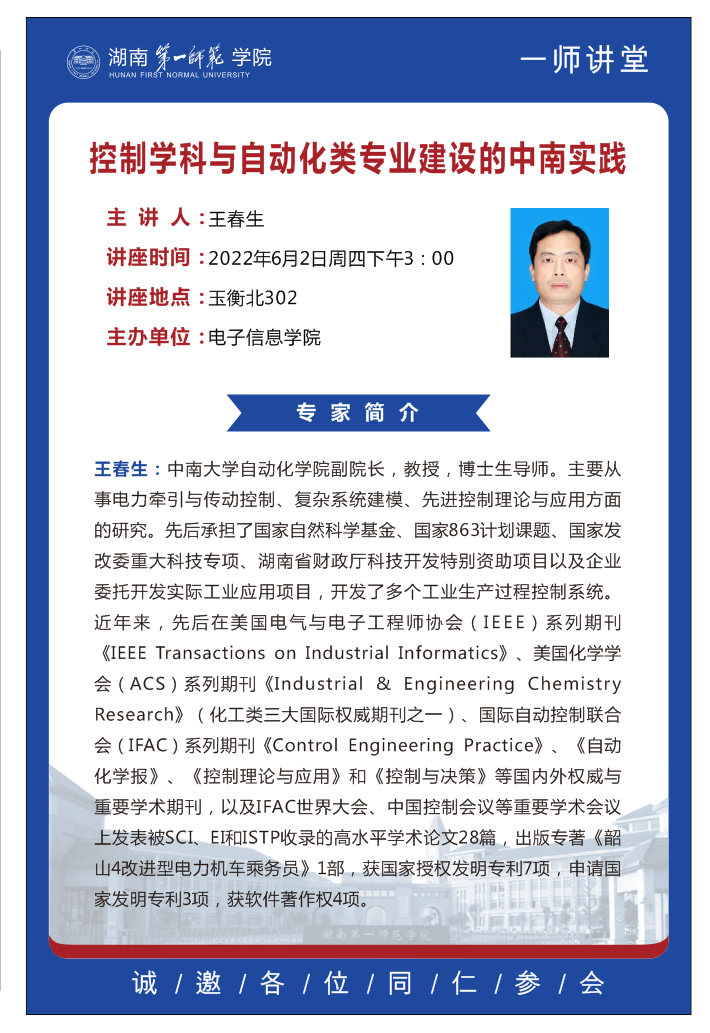 学术预告|控制学科与自动化类专业建设的中南实践