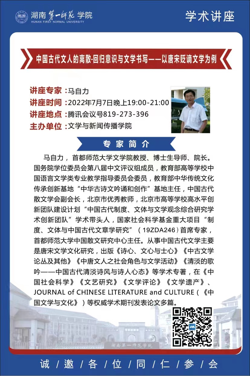 学术预告|中国古代文人的离散·回归仪式与文学书写——以唐宋贬谪文学为例