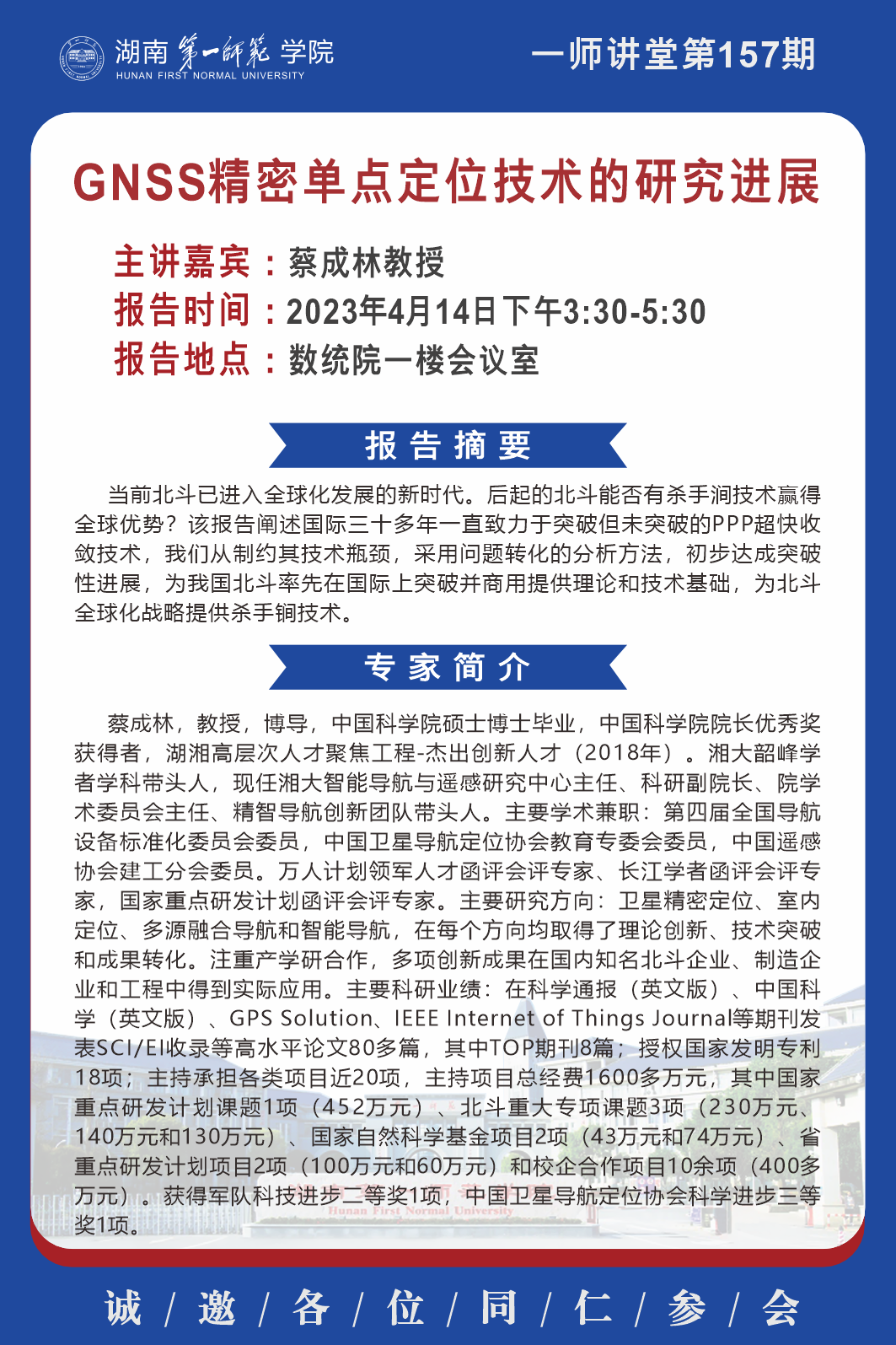 学术预告|一师讲堂第157期:GNSS精密单点定位技术的研究进展