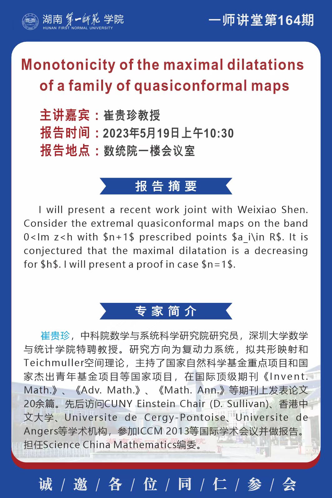 学术预告|一师讲堂第164期:Monotonicity of maximal dilatations of a family of quasiconformal maps