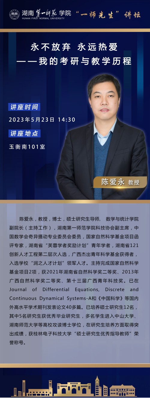 学术预告|“一师先生”讲坛第二期:永不放弃 永远热爱——我的考研与教学历程