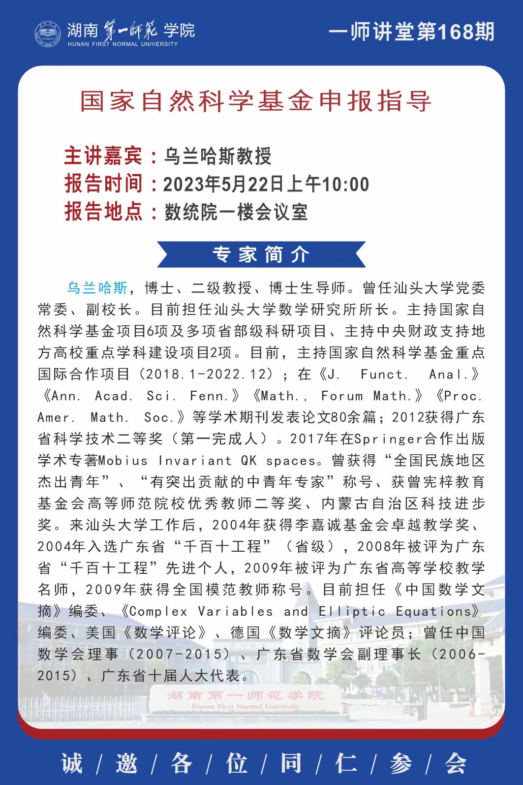 学术预告|一师讲堂第168期:国家自然科学基金申报指导