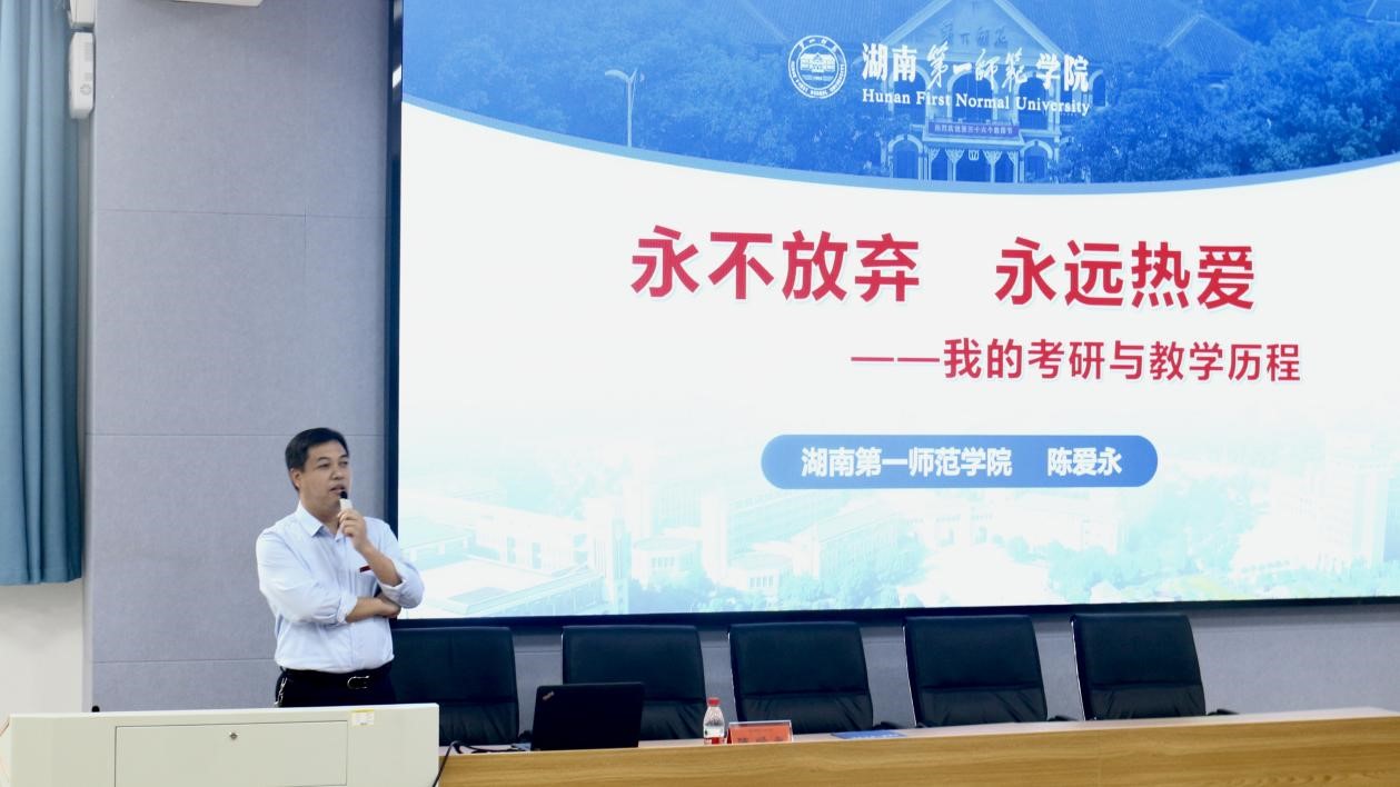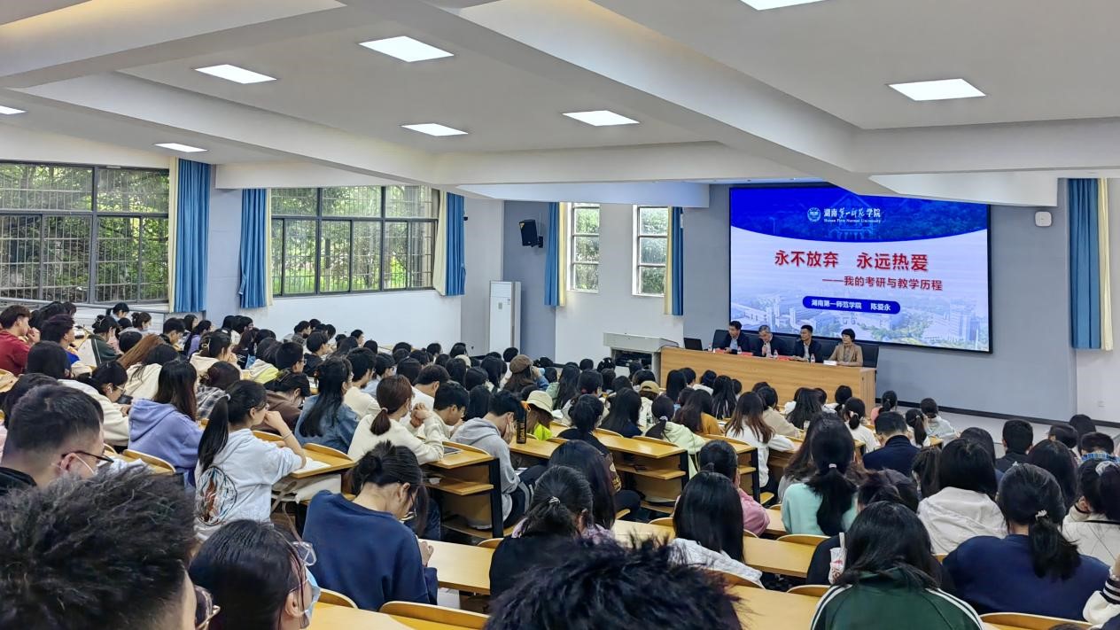 5月23日下午,“一师先生”数学与统计学院陈爱永教授在东方红校区玉衡南101报告厅作专题讲座《永不放弃,永远热爱——我的考研与教学历程》,这是我校“一师先生”讲坛的第二讲。校党委委员、副校长曹兴出席并主持活动,科研处处长肖攀,副处长罗燕以及全校师生代表300余人参加此次讲座。