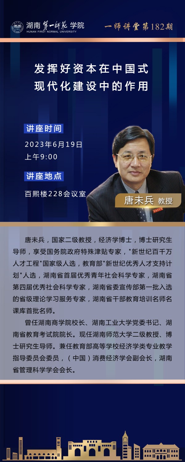 学术预告|一师讲堂第182期:发挥好资本在中国式现代化建设中的作用