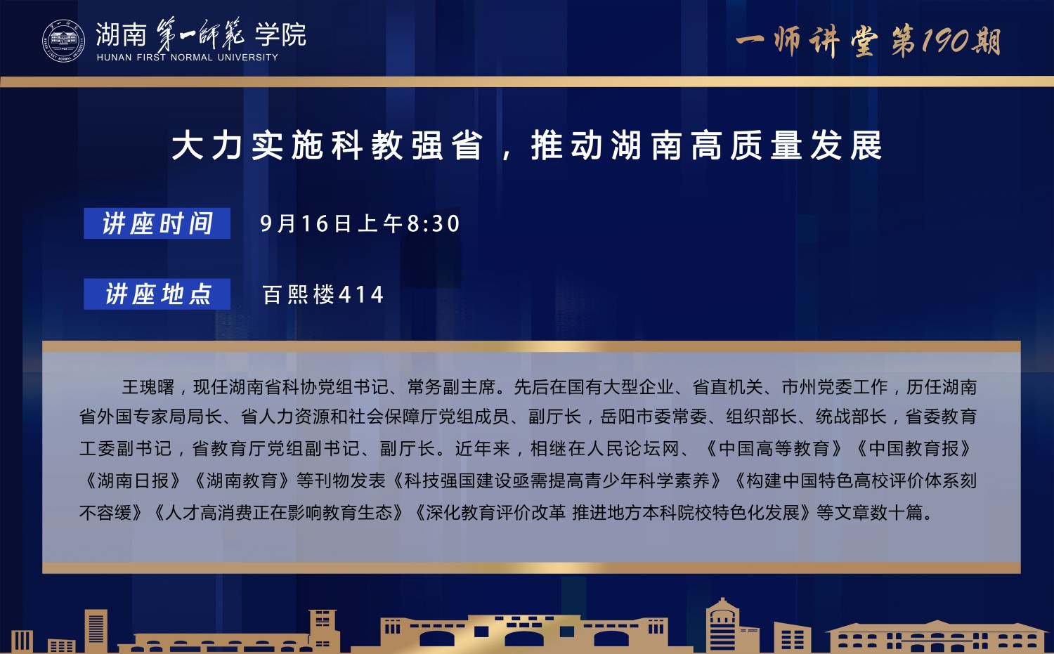 学术预告|一师讲堂第190期:大力实施科教强省,推动湖南高质量发展