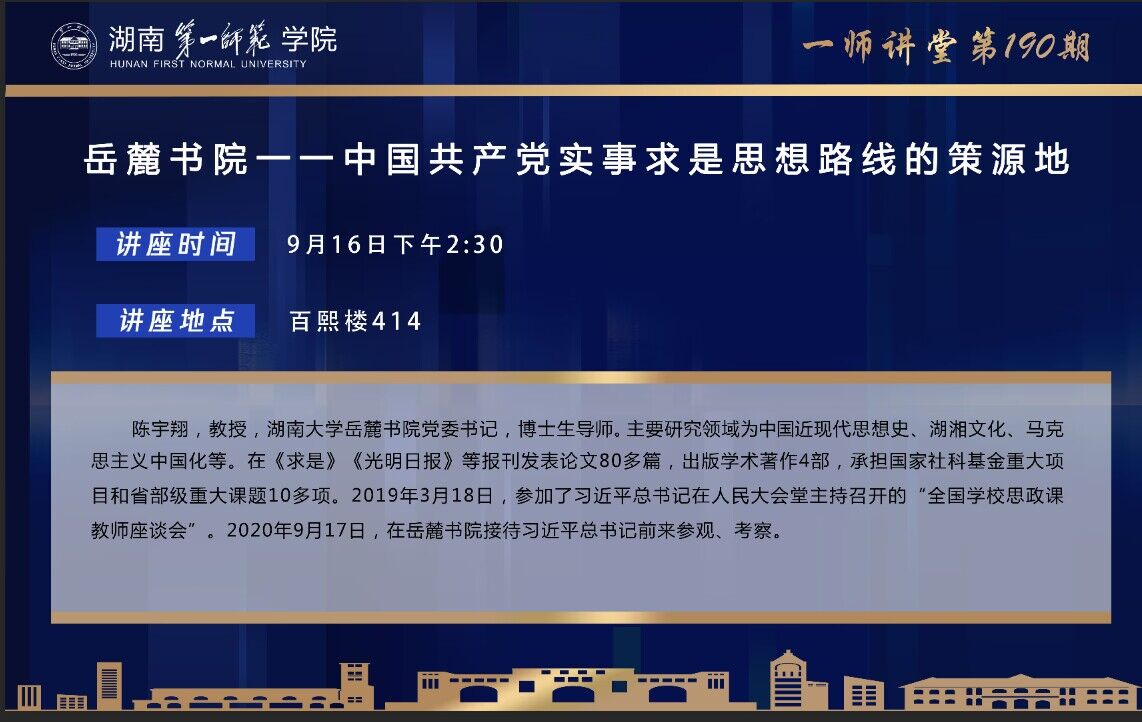 学术预告|一师讲堂第191期:岳麓书院一一中国共产党实事求是思想路线的策源地