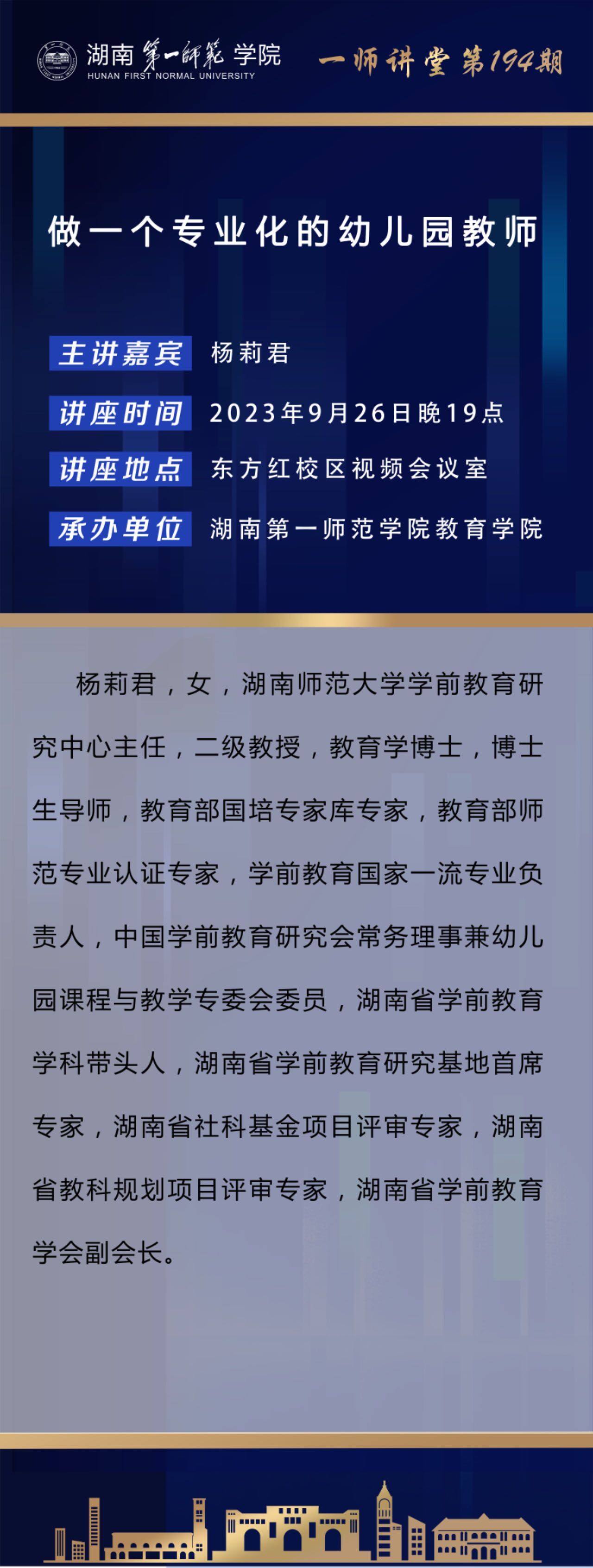 学术预告|一师讲堂第194期:做一个专业化的幼儿园教师