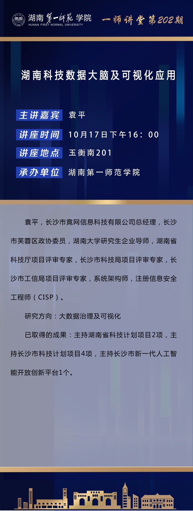 学术预告|一师讲堂第202期:湖南科技数据大脑及可视化应用