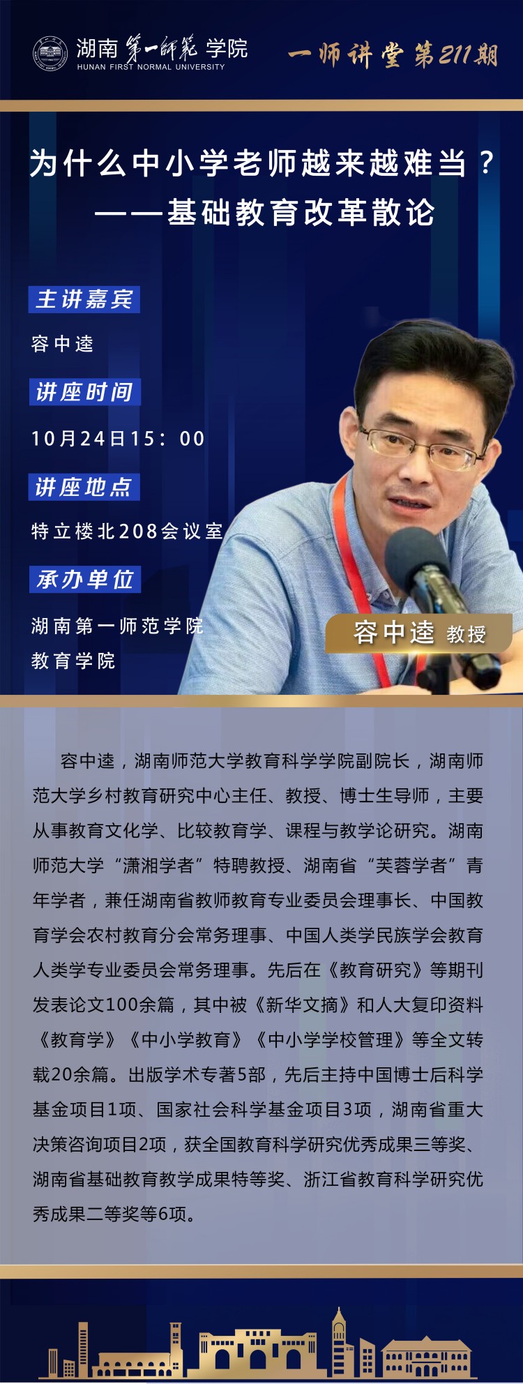 学术预告|一师讲堂第211期:为什么中小学老师越来越难当?——基础教育改革散论
