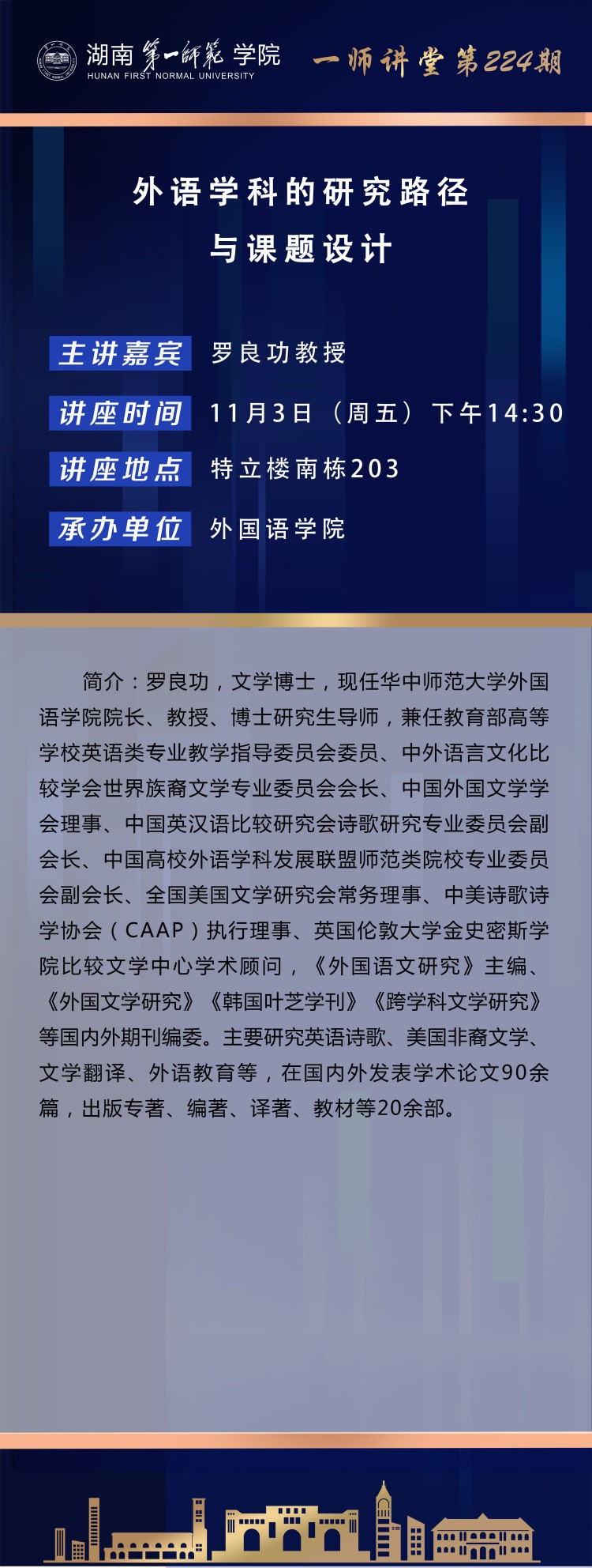 学术预告|一师讲堂第224期:外语学科的研究路径与课题设计