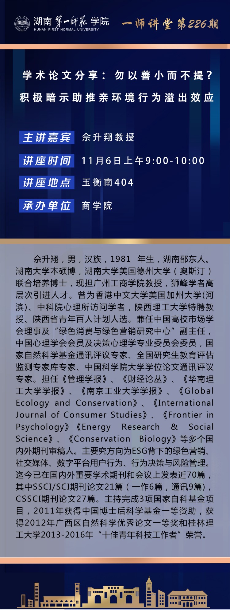 学术预告|一师讲堂第226期:学术论文分享:物以善小而不提?积极暗示助推亲环境行为溢出效应