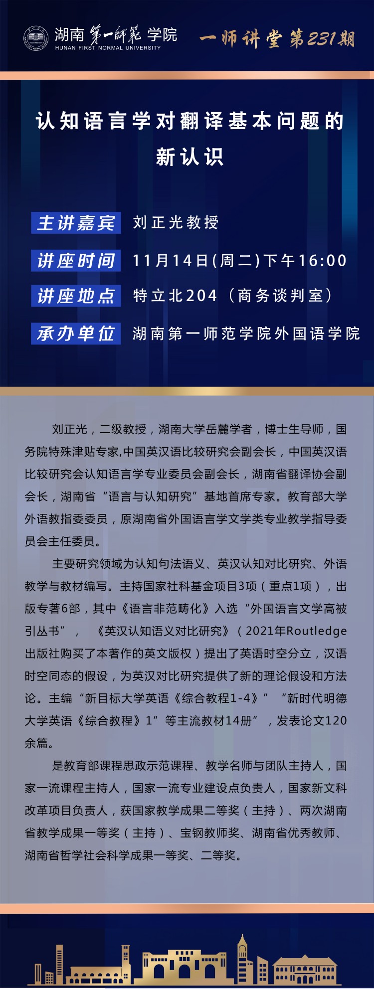 学术预告|一师讲堂第231期:认知语言学对翻译基本问题的新认识