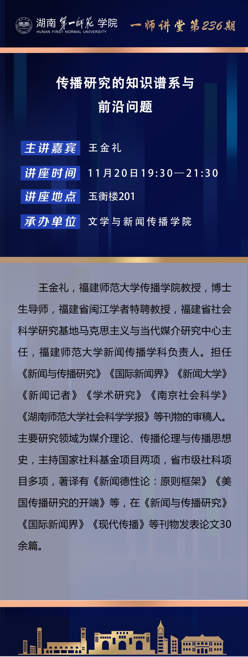 学术预告|一师讲堂第236期:传播研究的知识谱系与前沿问题