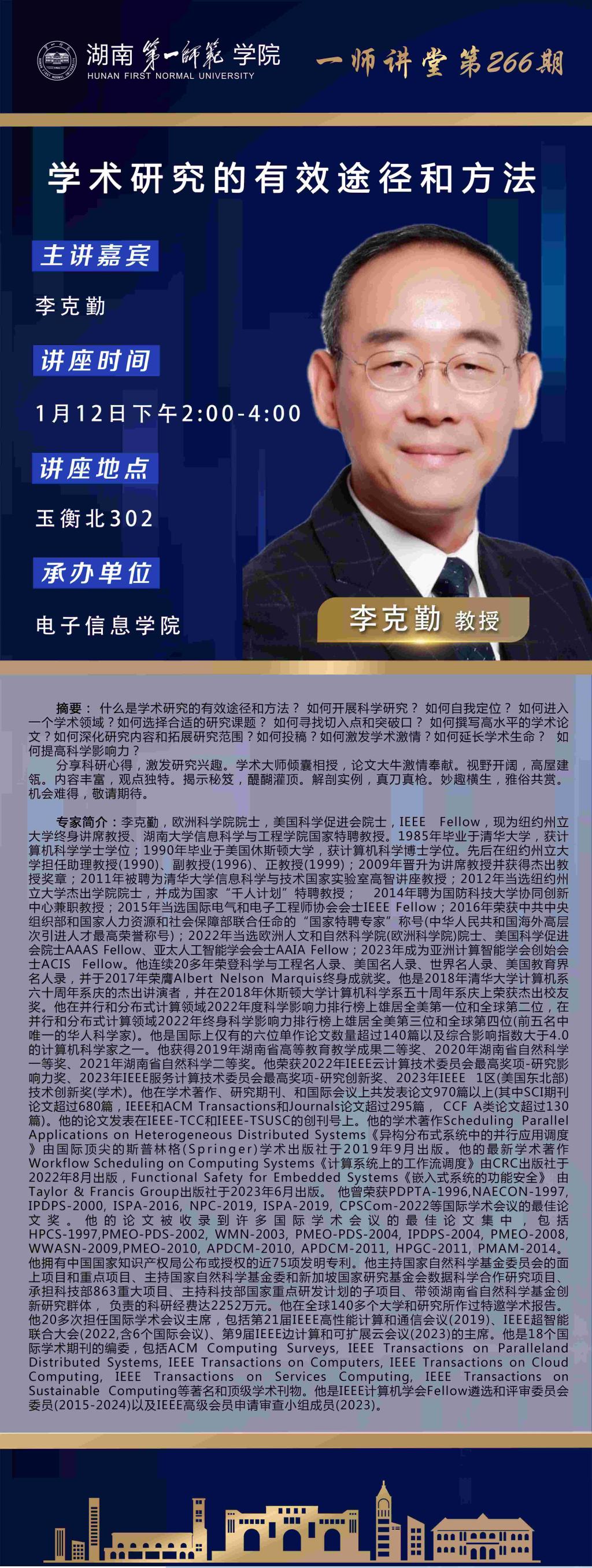 学术预告|一师讲堂第266期:学术研究的有效途径和方法