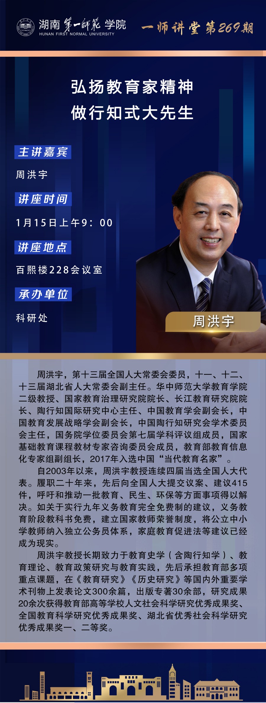 学术预告|一师讲堂第269期:弘扬教育家精神 做行知式大先生