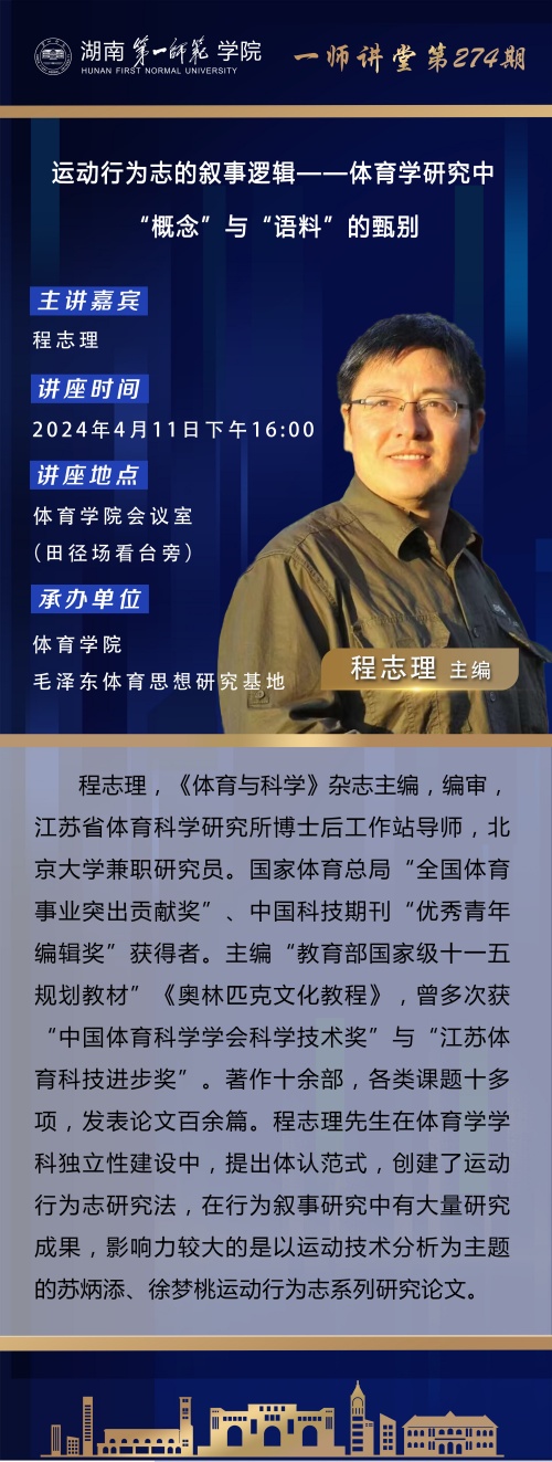 学术预告|一师讲堂第274期:运动行为志的叙事逻辑——体育学研究中“概念”与“语料”的甄别
