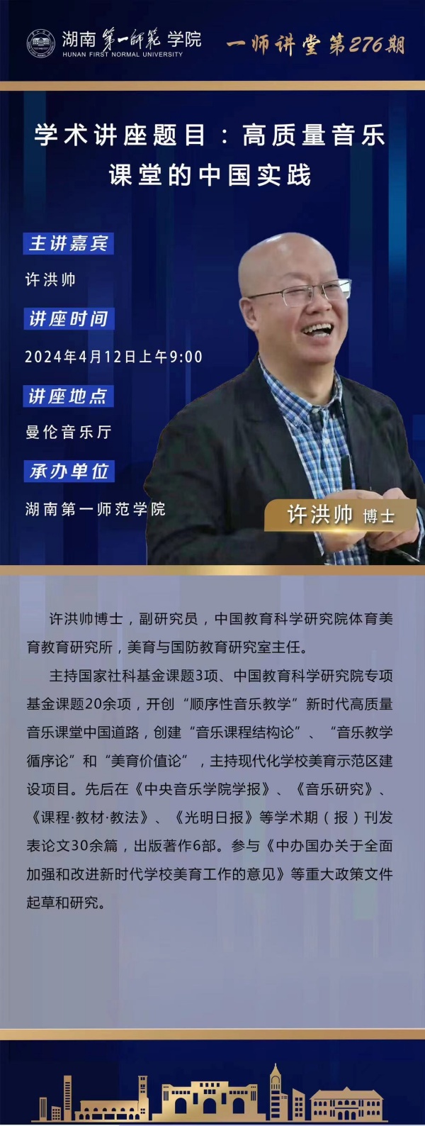 学术预告|一师讲堂第276期:高质量音乐课堂的中国实践