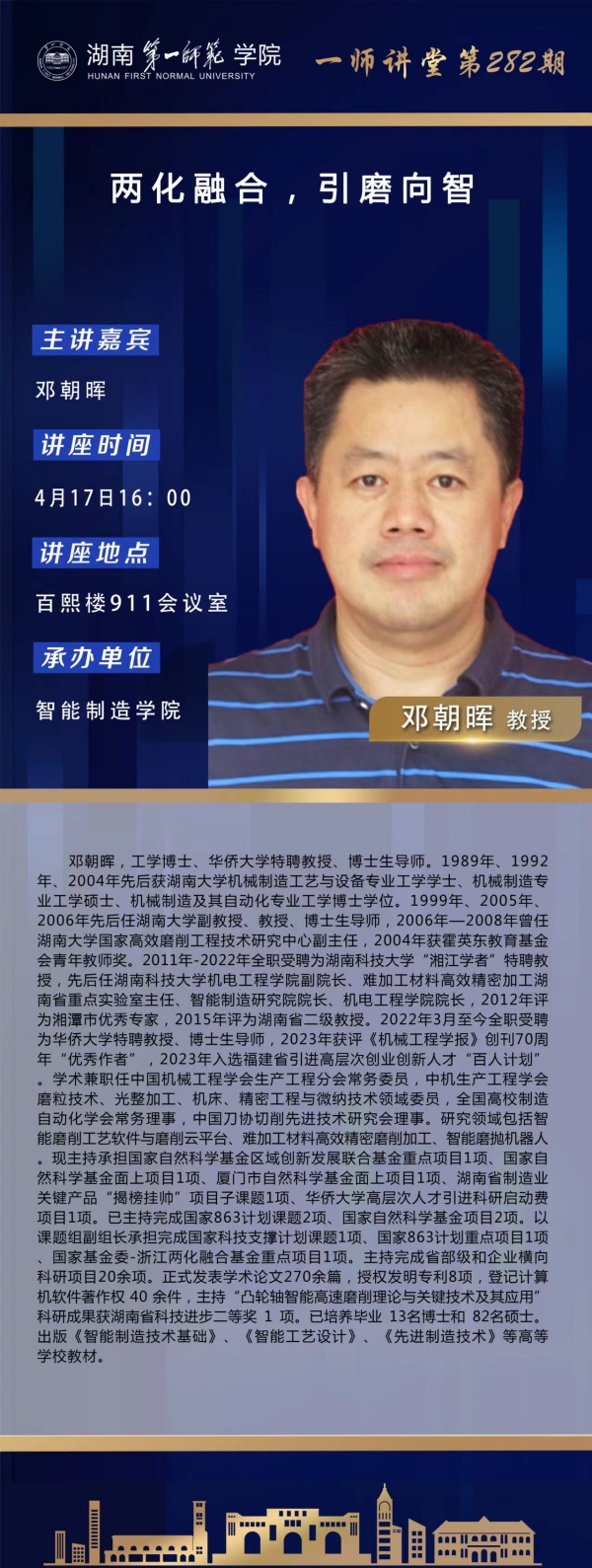 学术预告|一师讲堂第282期:两化融合,引磨向智