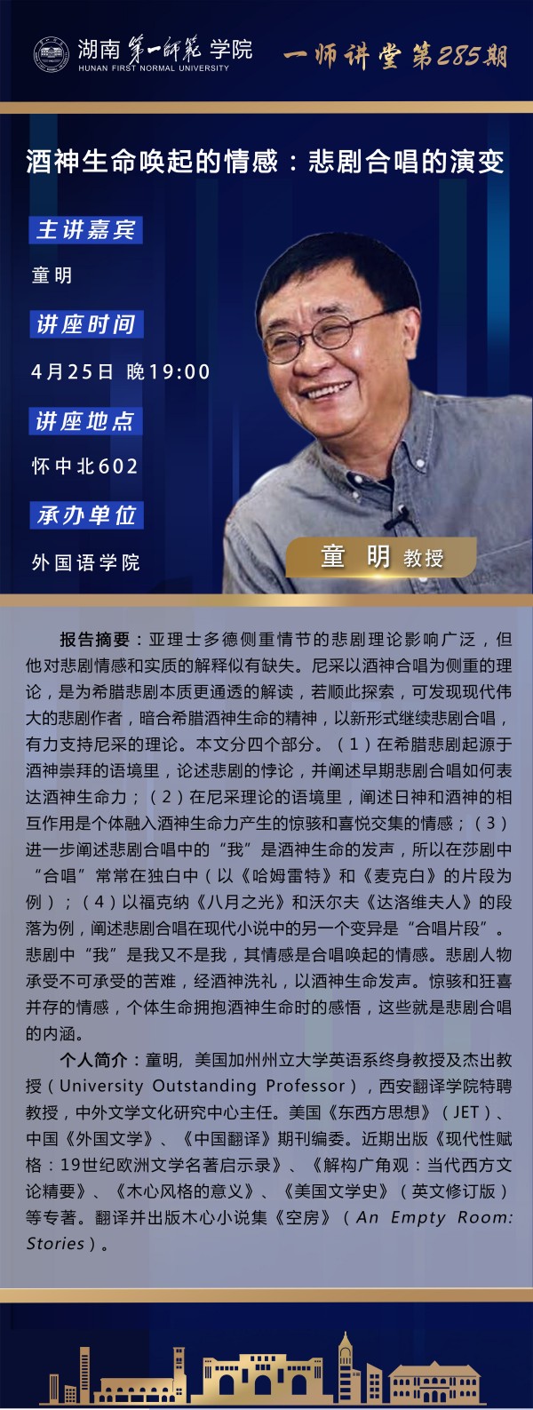 学术预告|一师讲堂第285期:酒神生命唤起的情感:悲剧合唱的演变