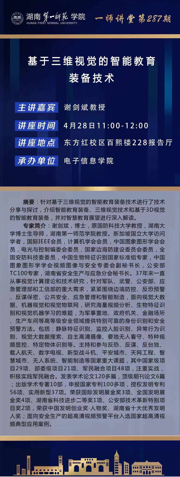 学术预告|一师讲堂第287期:基于三维视觉的智能教育装备技术