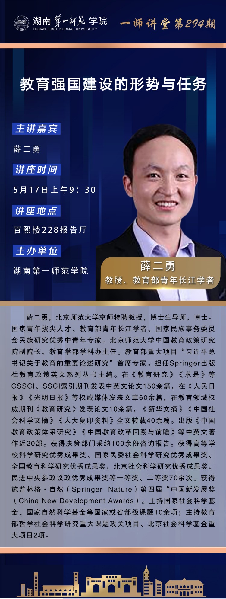 学术预告|一师讲堂第294期:教育强国建设的形势与任务