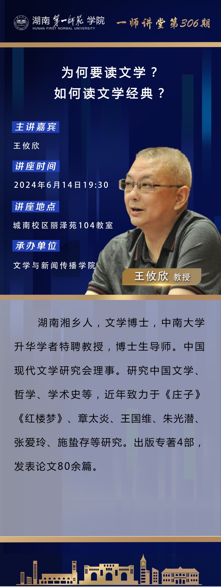 学术预告|一师讲堂第306期:为何要读文学?如何读文学经典?
