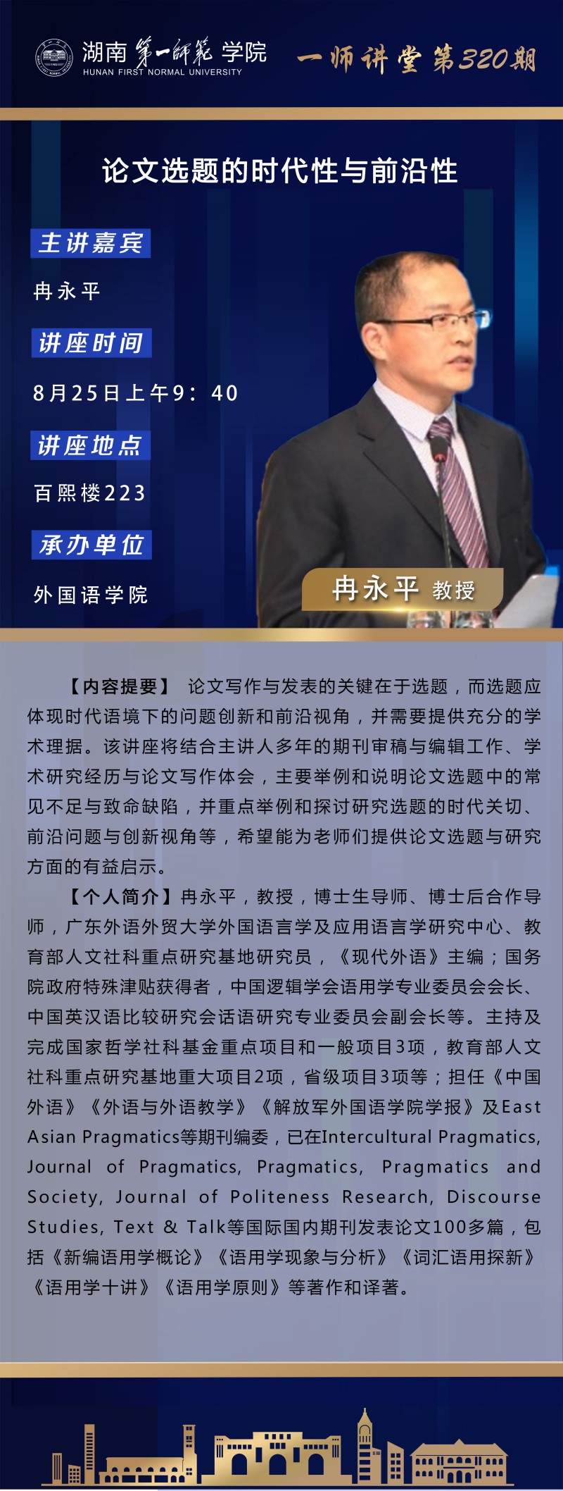 学术预告:一师讲堂第320期:论文选题的时代性与前沿性