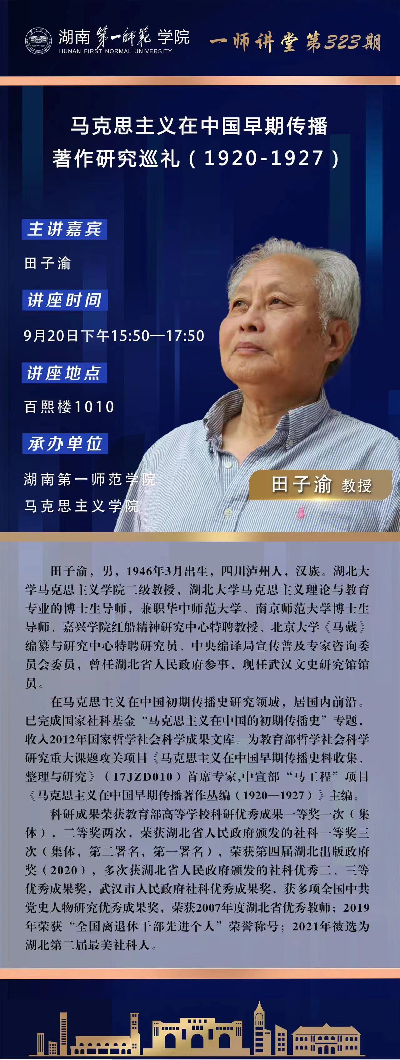 学术预告|一师讲堂第323期:马克思主义在中国早期传播著作研究巡礼(1920-1927)
