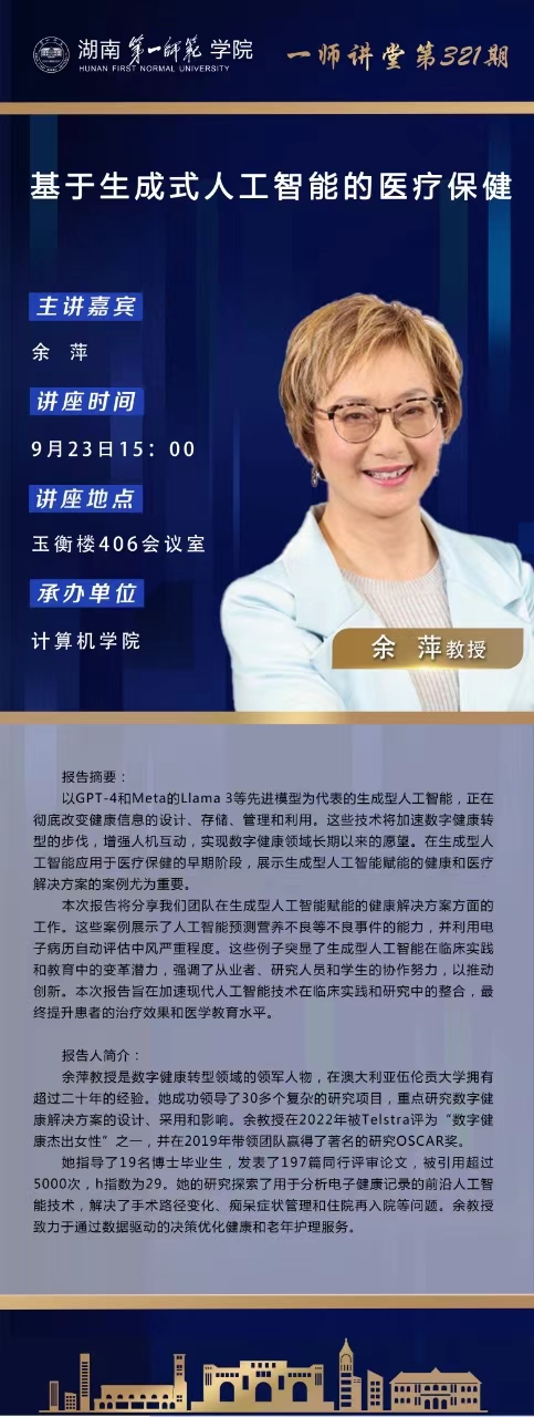学术预告|一师讲堂第321期:基于生成式人工智能的医疗保健