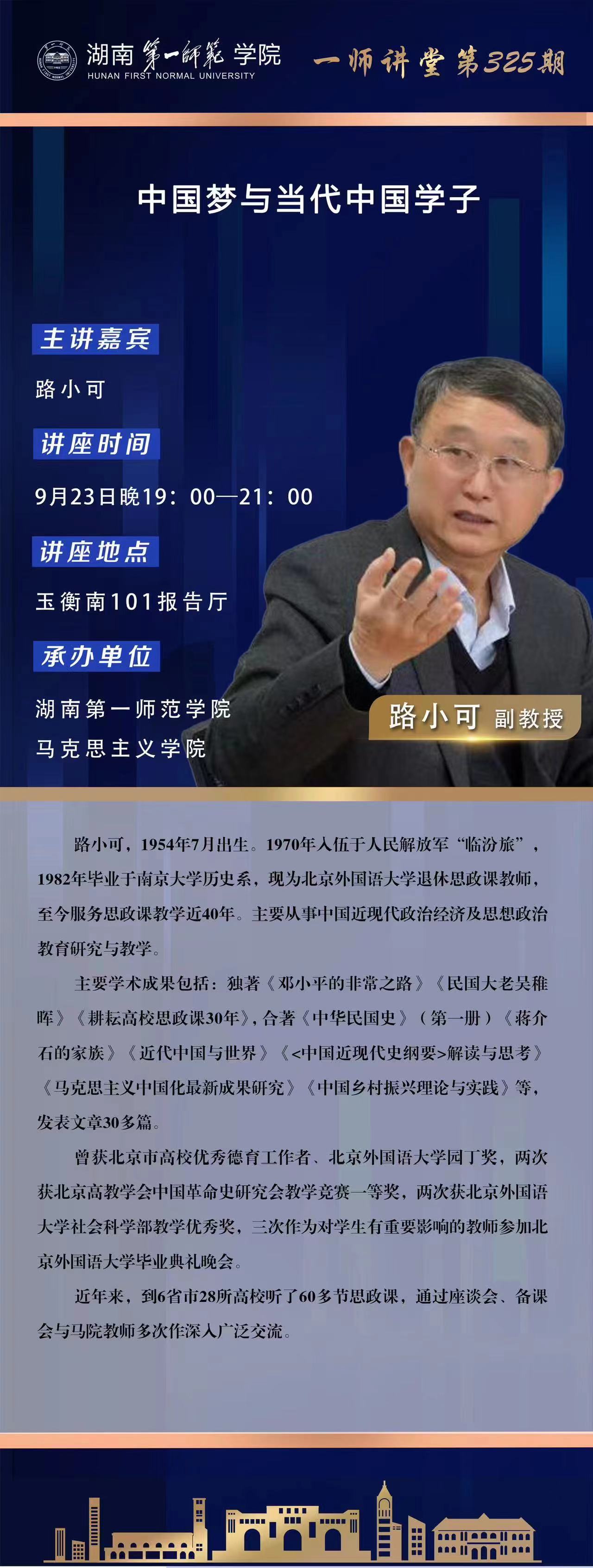学术预告|一师讲堂第325期:中国梦与当代中国学子