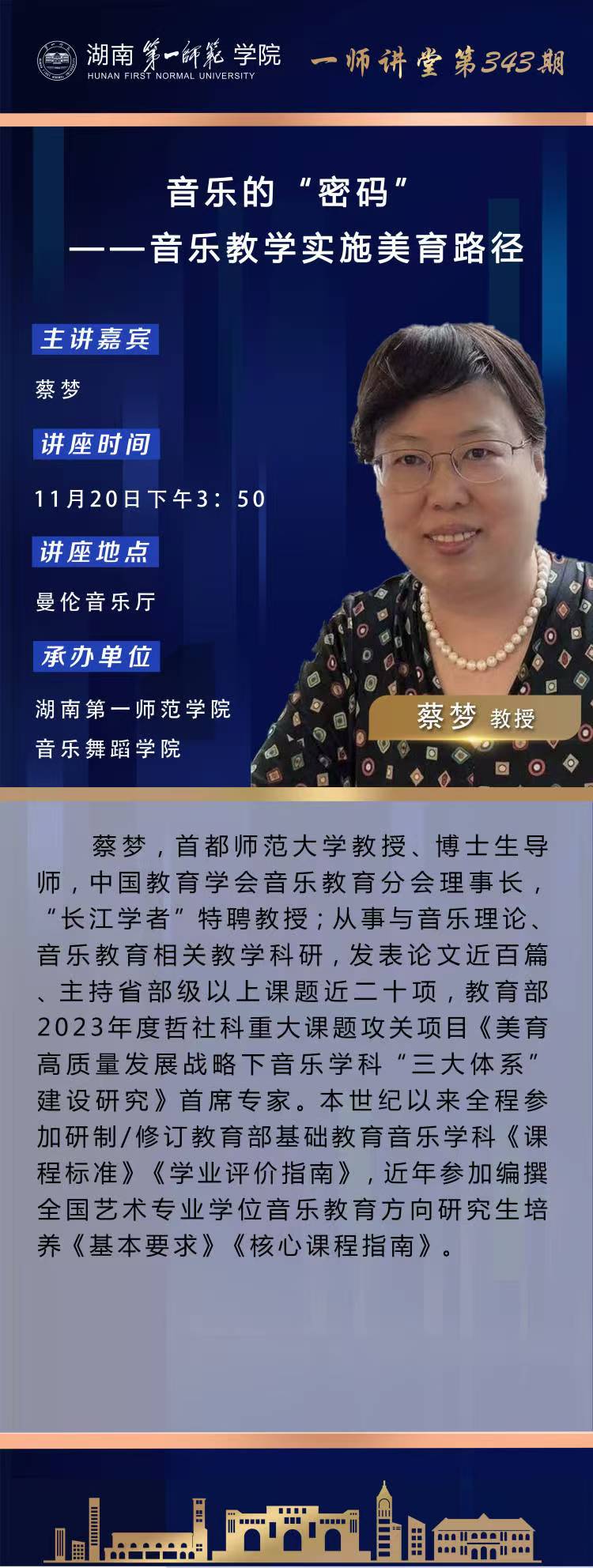 学术预告|一师讲堂第343期:音乐的“密码”——音乐教学实施美育路径