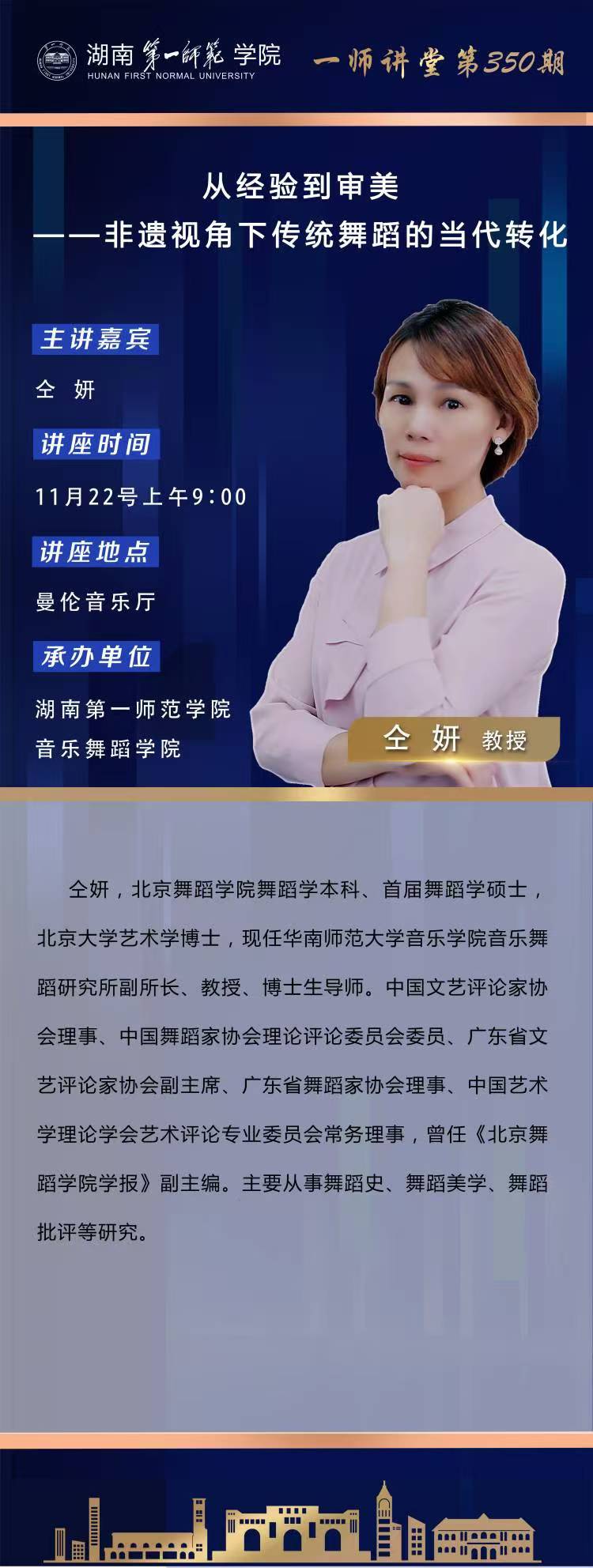 学术预告|一师讲堂第350期:从经验到审美——非遗视角下传统舞蹈的当代转化