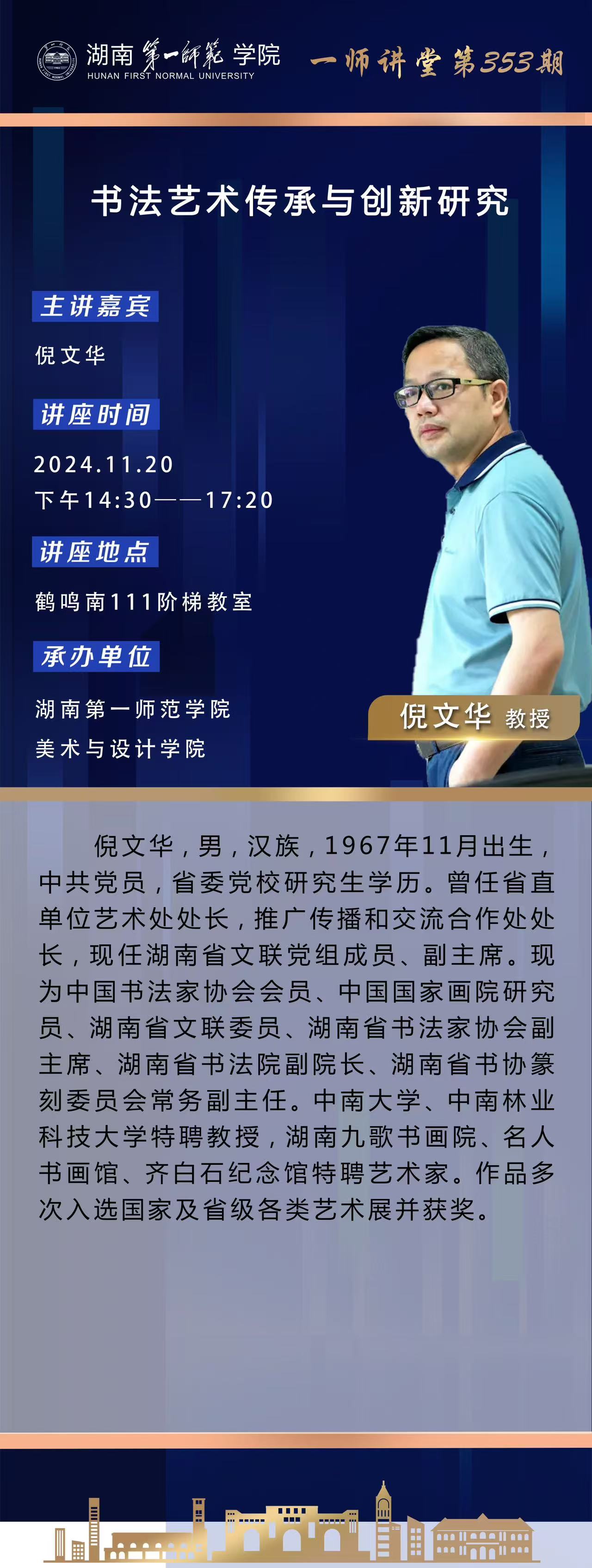 学术预告|一师讲堂第353期:书法艺术传承与创新研究
