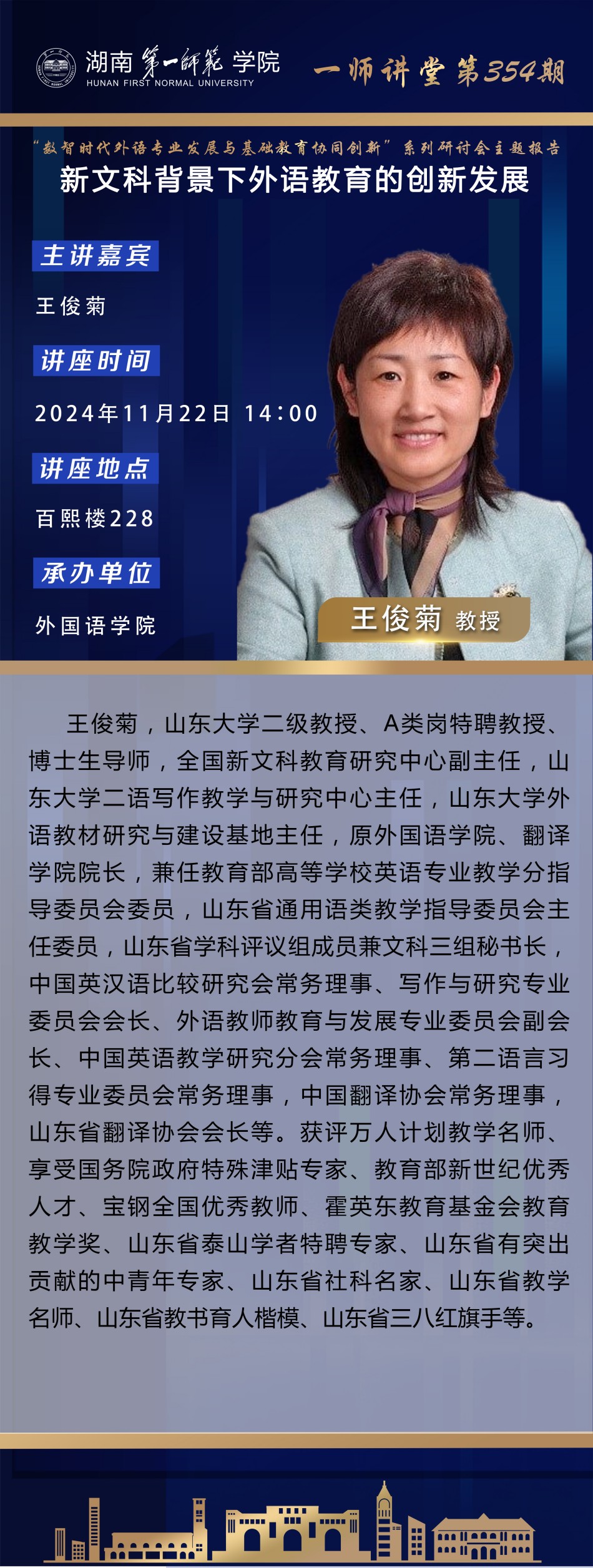 学术预告|一师讲堂第354期:新文科背景下外语教育的创新发展
