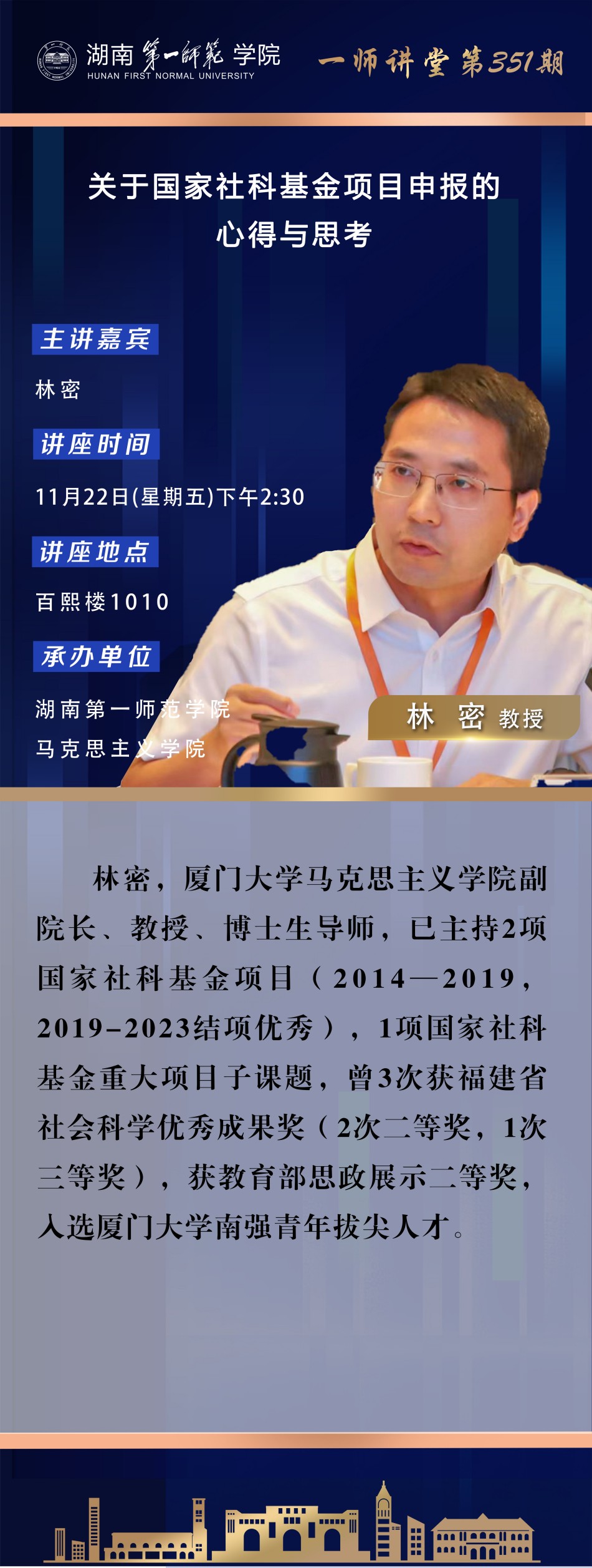 学术预告|一师讲堂第351期:关于国家社科基金项目申报的心得与思考