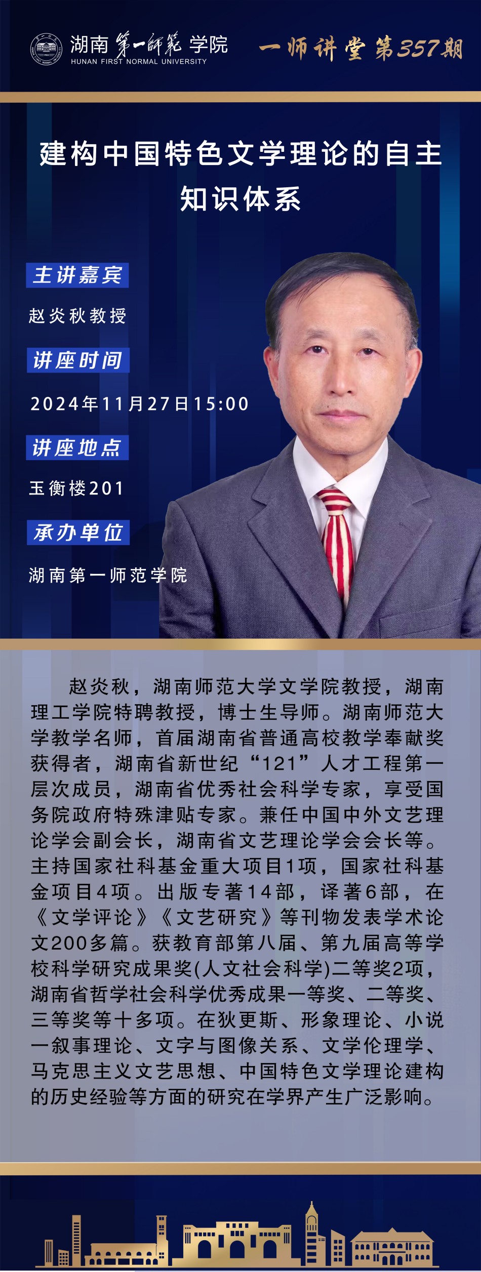 学术预告|一师讲堂第357期:建构中国特色文学理论的自主知识体系