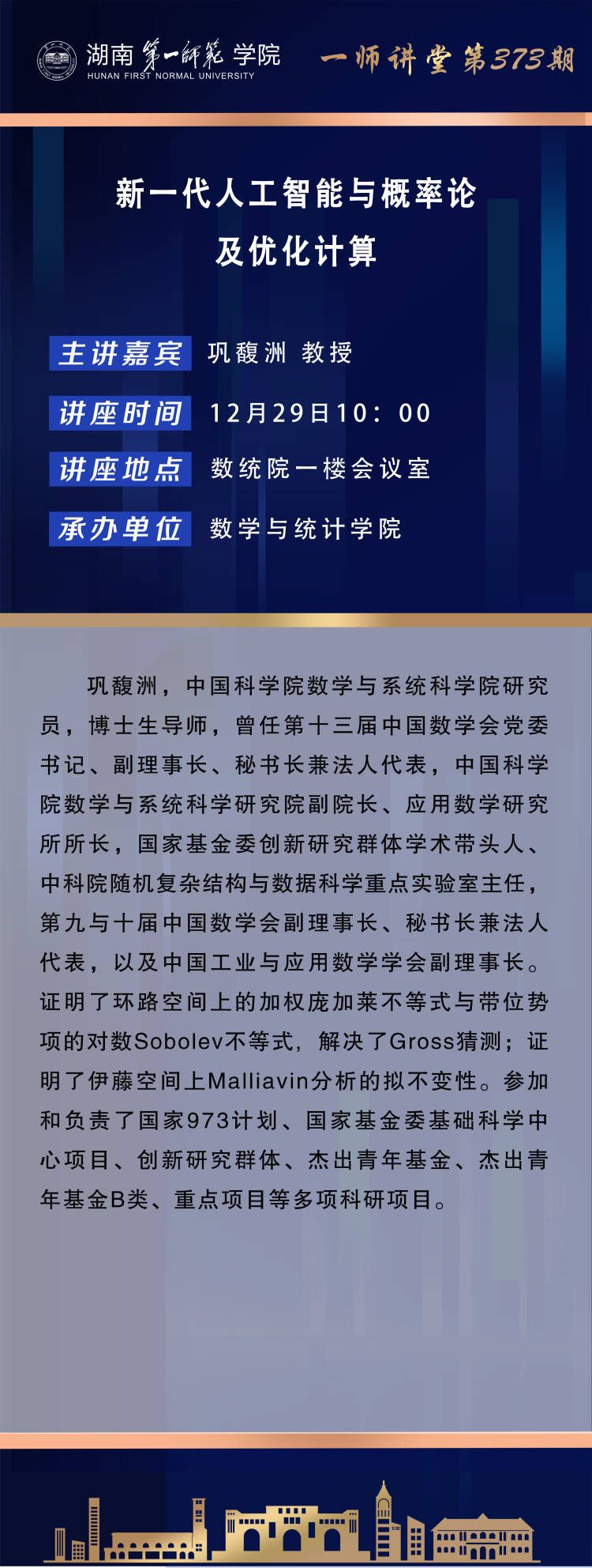 学术预告|一师讲堂第373期:新一代人工智能与概率论及优化计算