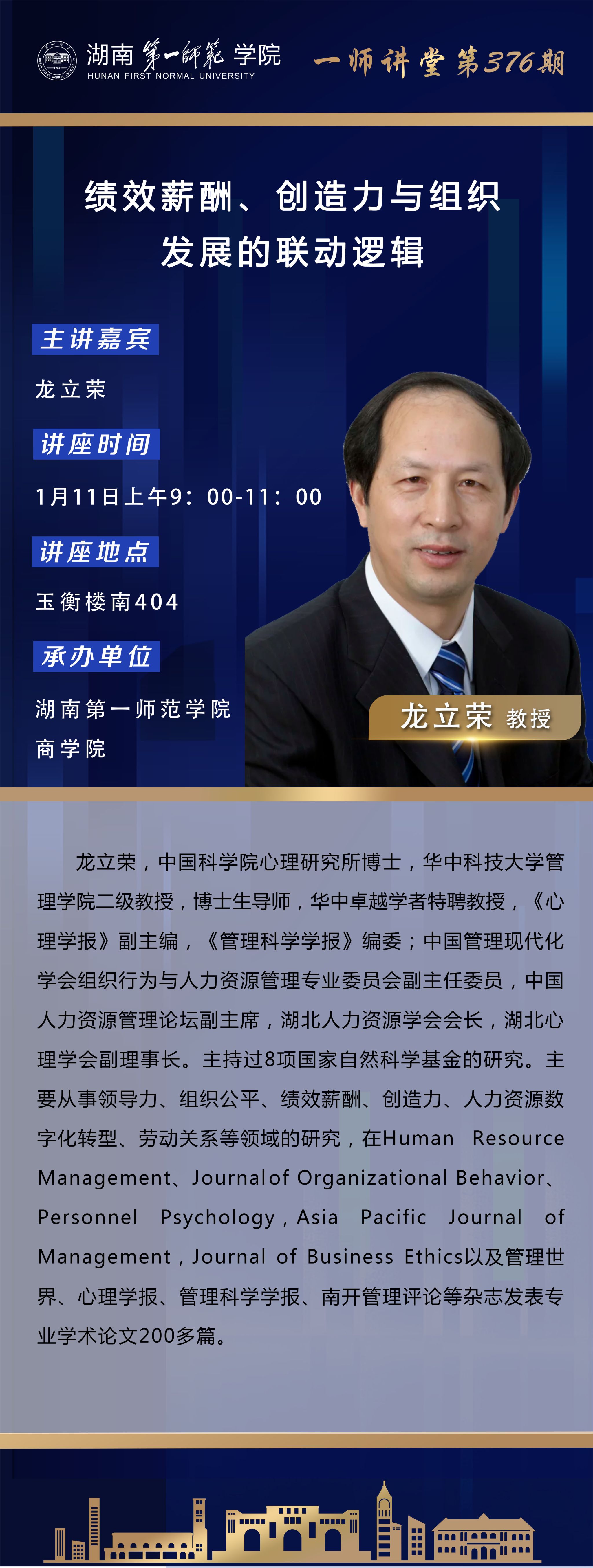 学术预告|一师讲堂第376期:绩效薪酬、创造力与组织发展的联动逻辑