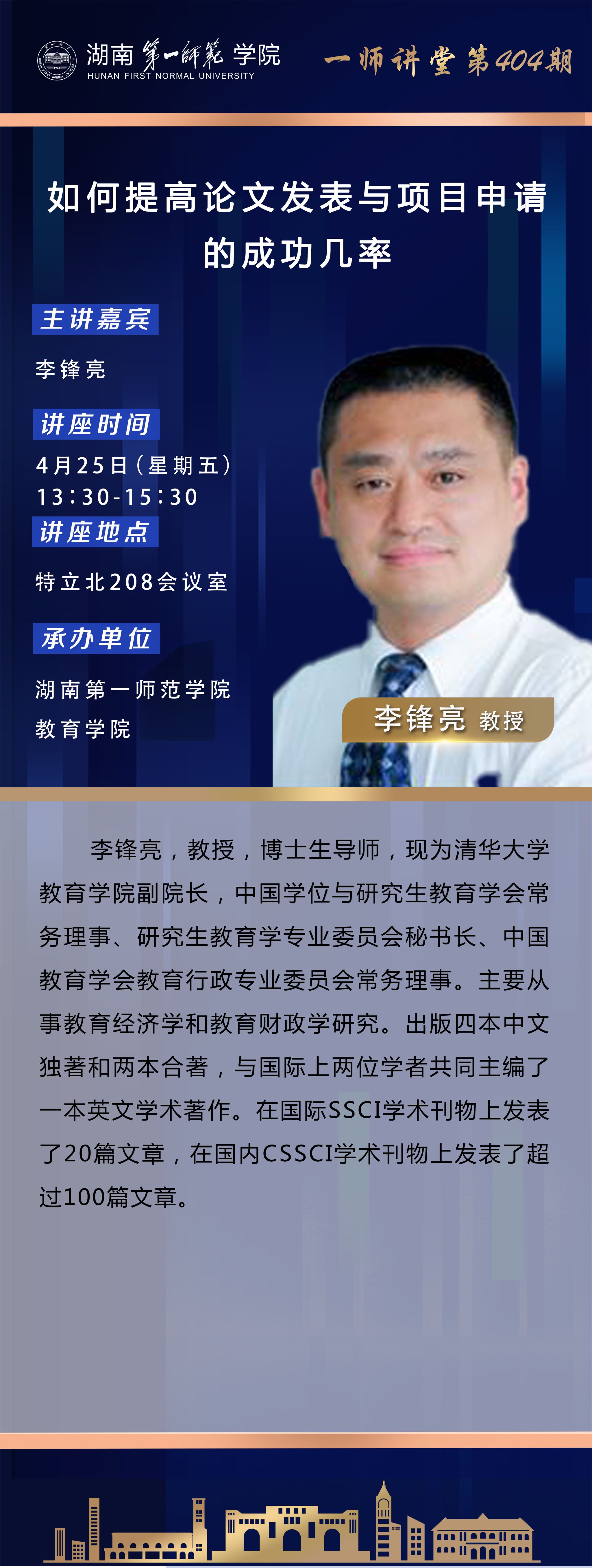 学术预告|一师讲堂第404期:如何提高论文发表与项目申请的成功几率