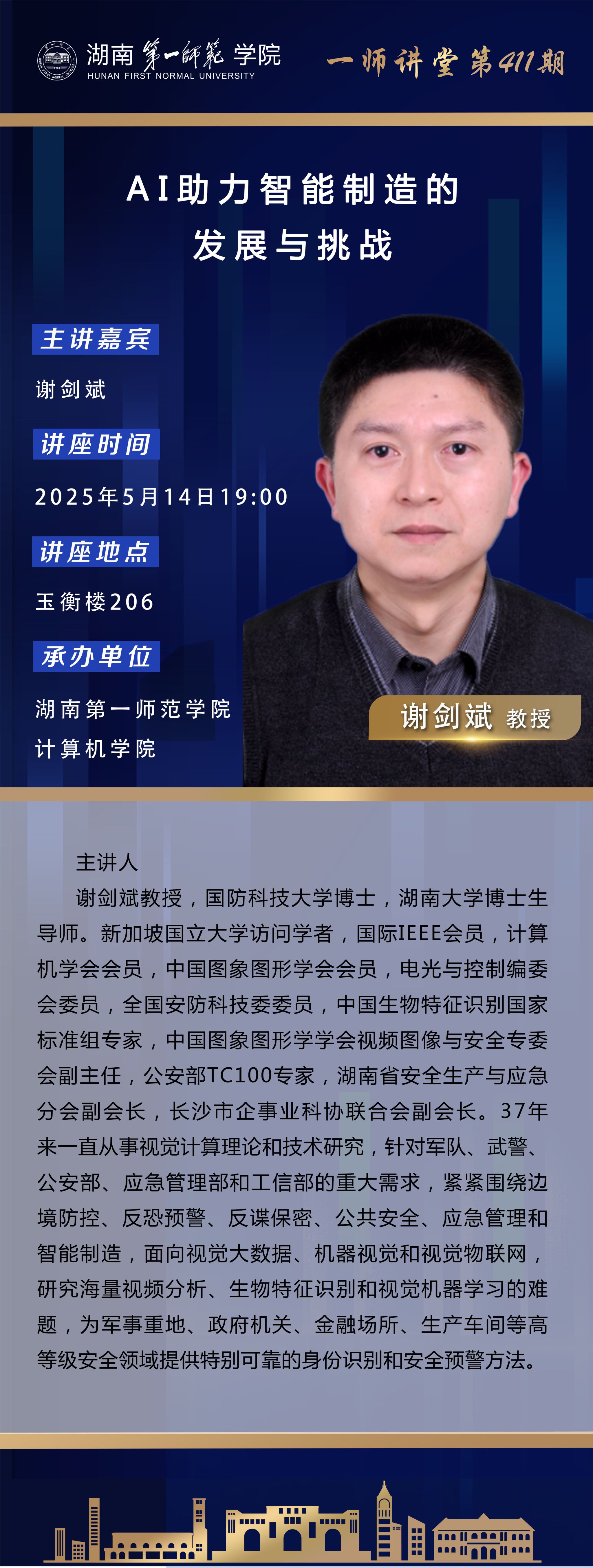 学术预告|一师讲堂第411期:AI助力智能制造的发展与挑战