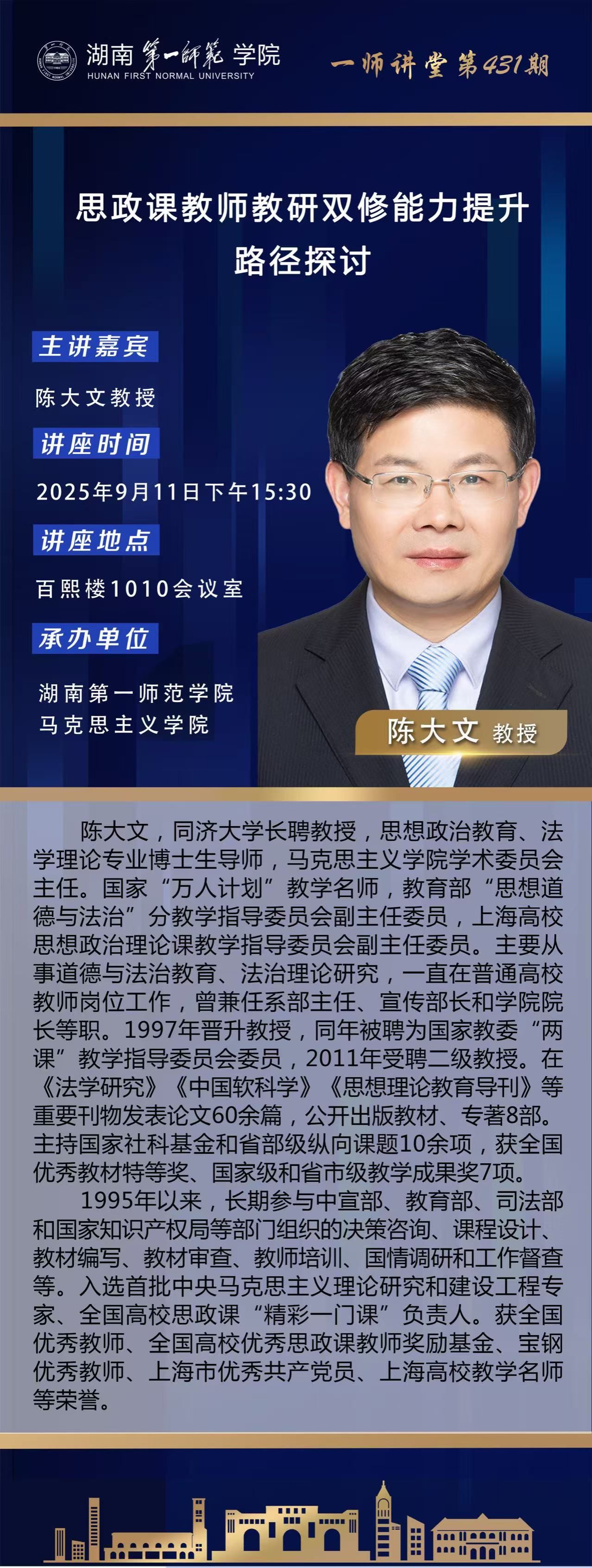 学术预告|一师讲堂第431期:思政课教师教研双修能力提升路径探讨