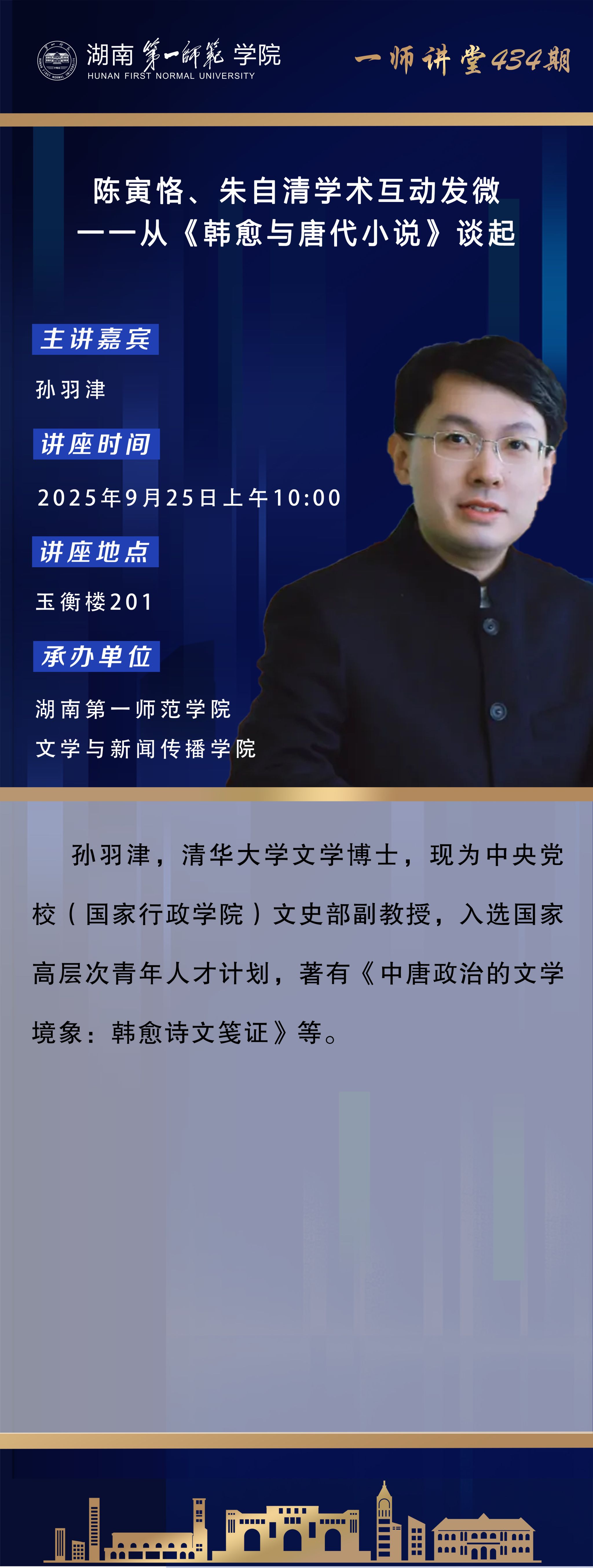 学术预告|一师讲堂第434期;陈寅恪、朱自清学术互动发微——从《韩愈与唐代小说》谈起