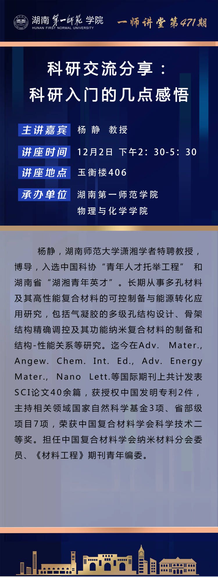 学术预告|一师讲堂第471期:科研交流分享:科研入门的几点感悟