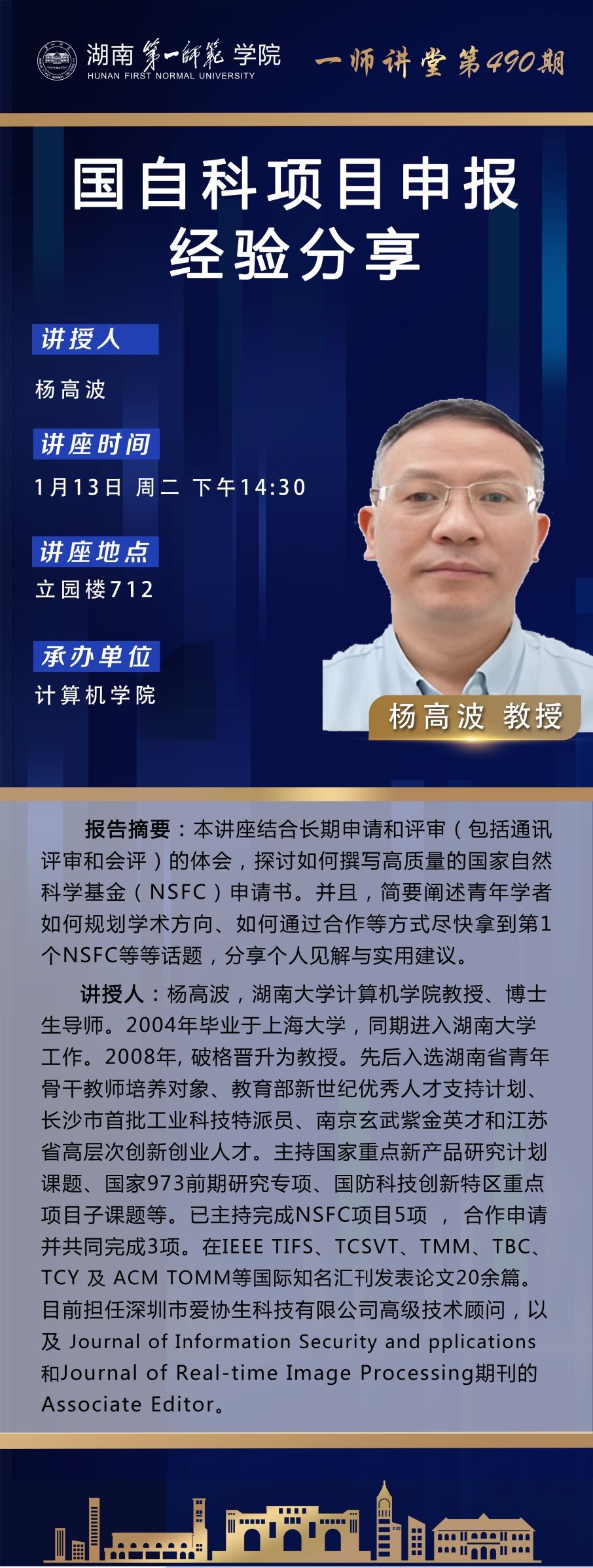 学术预告|一师讲堂第490期:国自科项目申报经验分享