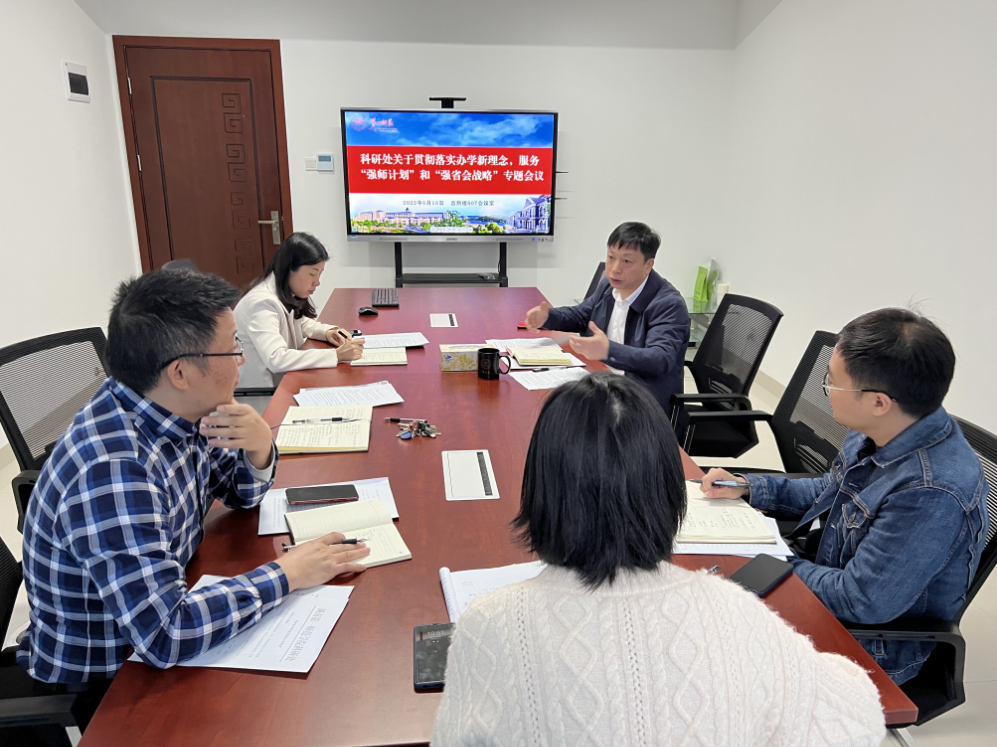 5月16日上午10点,科研处在百熙楼807会议室召开贯彻落实办学新理念,服务“强师计划”和“强省会战略”专题研学会议,会议由黄小喜处长主持,科研处全体人员参加会议。