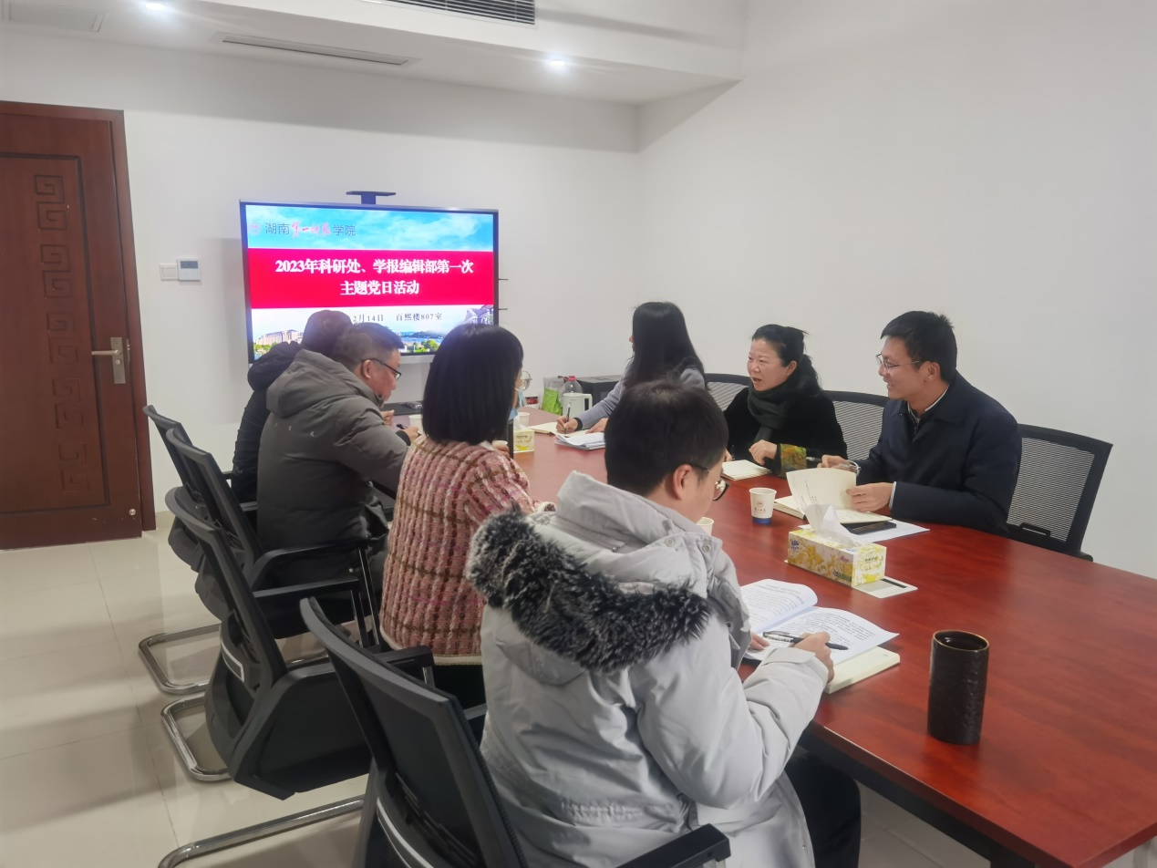2月14日下午,科研处、期刊编辑部党支部在百熙楼807室开展2023年第一次主题党日活动,机关党委委员、纪委监察专员办公室主任陈天涯出席活动,支部党员钟佩君、田祖伟、胡伟、张艳,入党积极分子余亮参与学习,活动由肖攀主持。