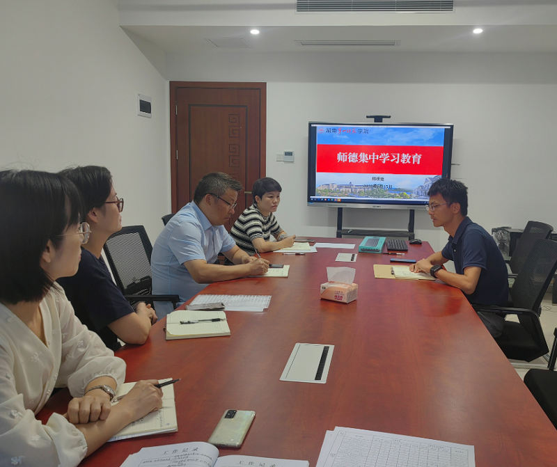 7月15日上午,科研处党小组在百熙楼807室开展以“师德”为主题的党日活动。科研处党小组全体成员参与,党支部书记肖攀主持。